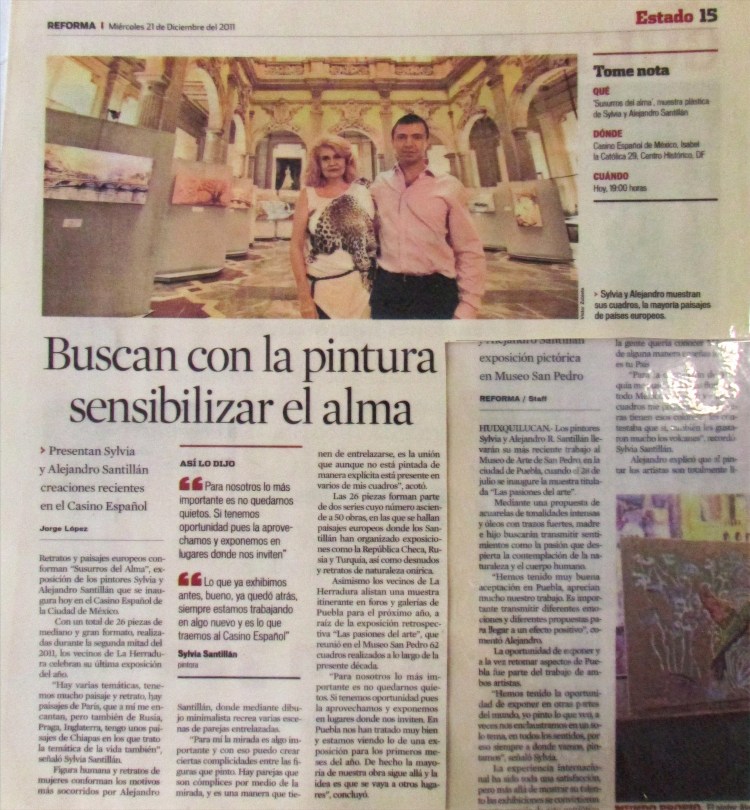 Curriculum Visual – Periódicos Internacionales y Reforma todos Primera Plana – Estoy considerado uno de los Mejores Pintores Vivos en el Mundo, sobre todo en Europa – Carrousel de fotos